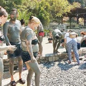 Marmaris Dalyan turu kapsamında, dalyan ufak tekneleri ile deltada dolaşırken bu sefer termal şifalı suyu ve çamuru ile meşhur Gel girme Kaplıcası mevkisine tekneler yanaşıyor.. Termal suyunun sıcaklığı 39 derece olup muhteviyatında kükürt, sodyum, hidrojen sülfür, florür ve radon gazı barındırır . Şifalı suyu özellikle romatizma hastalığı başta olmak üzere metabolizma hastalıkları, cilt hastalıkları, siyatik ve ameliyat sonrası dönem olan nekahet dönemi için iyi geldiği söylenmektedir. Kalp probleminiz veya sıcak ortamda bulunduğunuz zaman sizi etkileyen bir husus varsa doktorunuza danışmanızda fayda var. Çamur banyosundan sonra dalyan ufak tekneleri ile otobüsden indiğiniz bölgeye gelerek Marmaris ‘e geri dönmek üzere tur sona ermektedir.